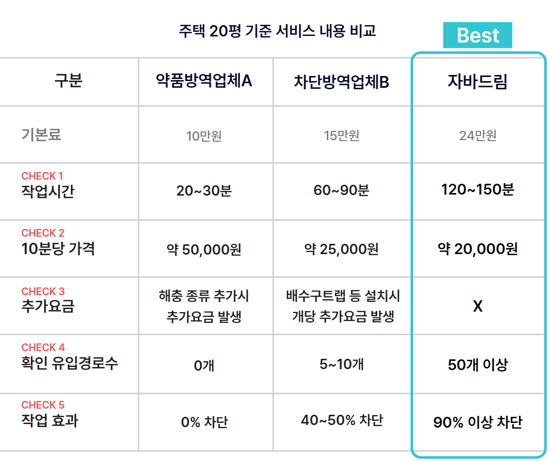 '올인원(유입차단 + 약품)' 서비스를 선택하시는 경우 해충 퇴치를 위한 약품 처리가 포함되어 있습니다. '유입 차단 시공' 을 서비스를 이용하시면 차단 시공만 이용하실 수 있습니다.