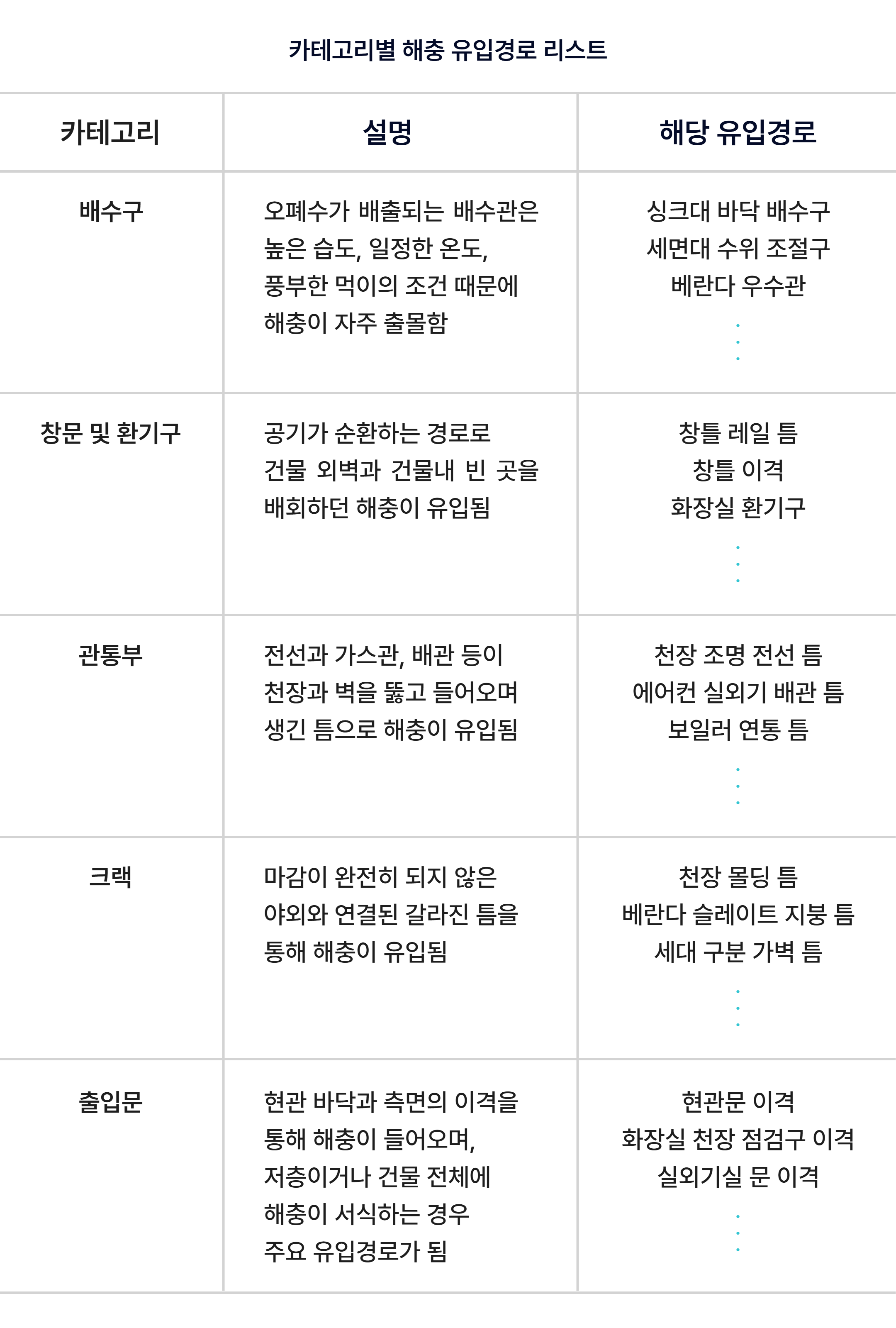‘유입통로를 차단’해야 박멸됩니다.