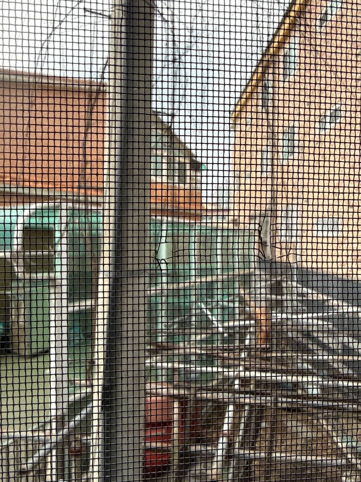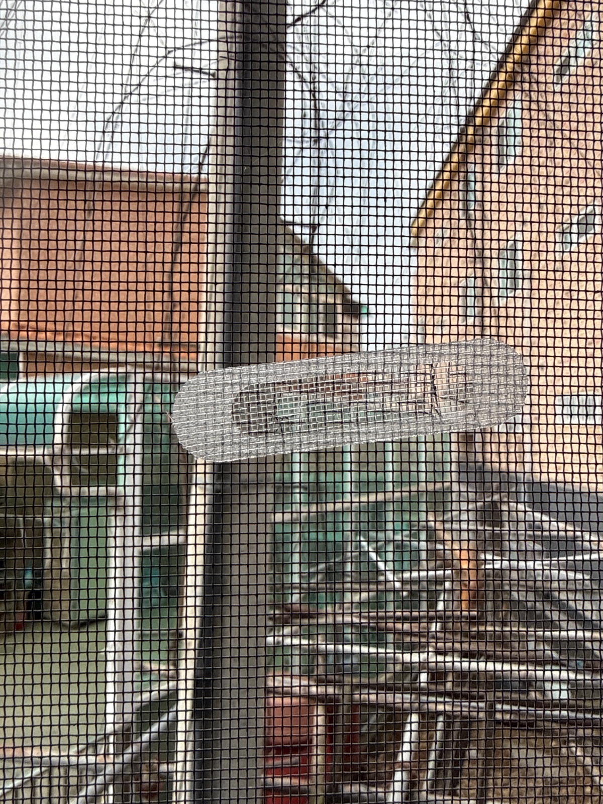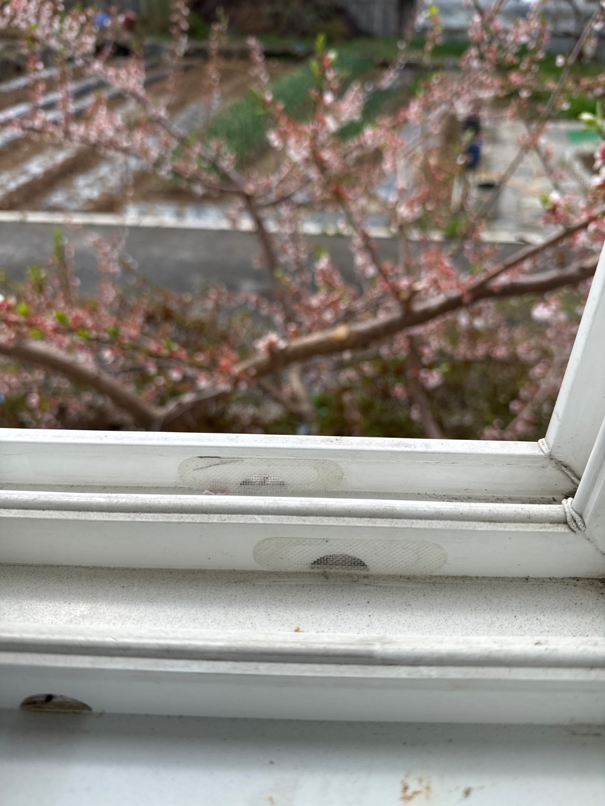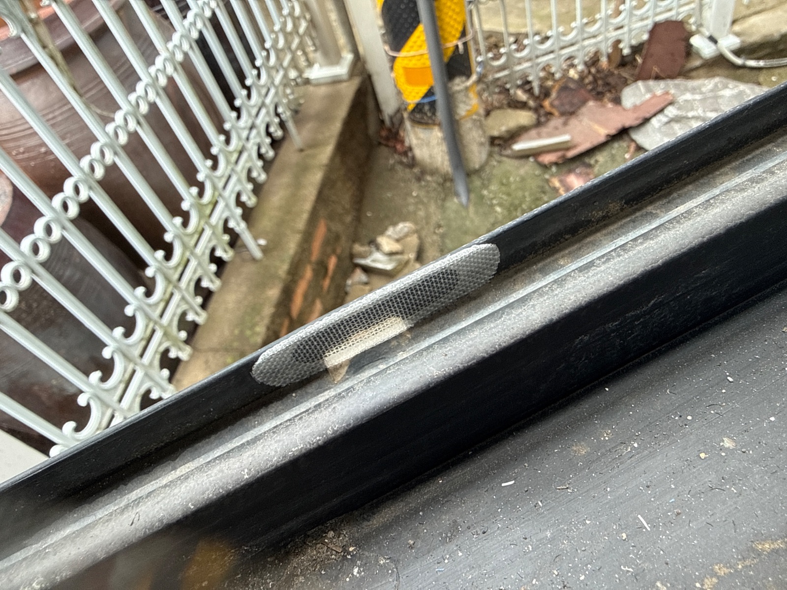 방충망에 구멍이 나있어 빗물구멍테이프로 유입통로 차단